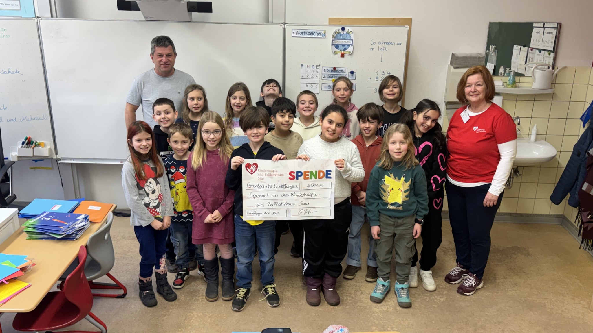 Kurz vor den Faschingsferien durfte sich unsere Schulgemeinschaft über eine ganz besondere Aktion freuen: Die Schülerinnen und Schüler der Grundschule Uchtelfangen übergaben eine Spende in Höhe von 400 Euro an das Kinderhospiz- und Palliativteam Saar.